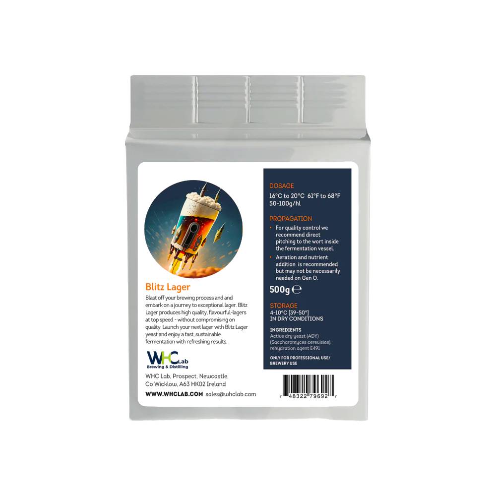 Blitz Lager är en robust stam som kan producera fantastiska lageröl samt andra stilar som kräver en ren jäsning, allt inom en bråkdel av den tid som det normalt tar, vid högre temperaturer. Denna stam kombinerar den krispiga, rena karaktären hos traditionella lager med bekvämligheten att kunna användas i rumstemperatur.