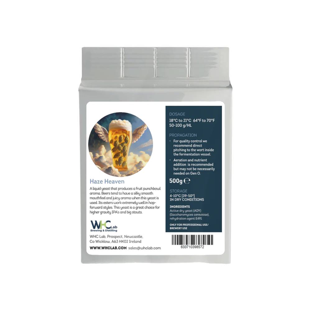 En dynamisk och fängslande jäst som hyllar de brittiska stilarna. Haze Heaven är symbolen för engelsk alejäst som framkallar essensen av klassiska brittiska stilar med en modern twist. Det är ett mångsidigt kraftpaket som levererar ett komplext utbud av både smaker och aromer vilket gör den till ett exceptionellt val för bryggerier som vill skapa både traditionella stilar, såsom fat ale och porters, och moderna stilar, såsom New England IPA och disiga öl.